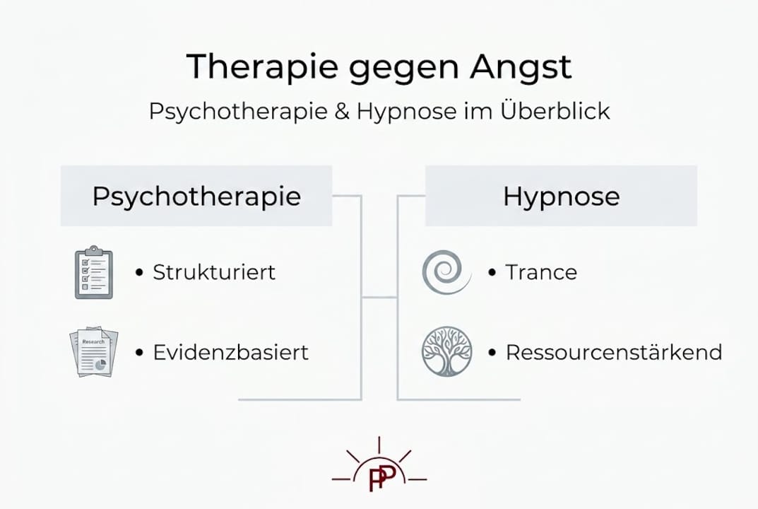 | Bewährte Methoden | Kognitive Verhaltenstherapie und Hypnosetherapie sind wissenschaftlich belegte Strategien zur Angstbewältigung. |