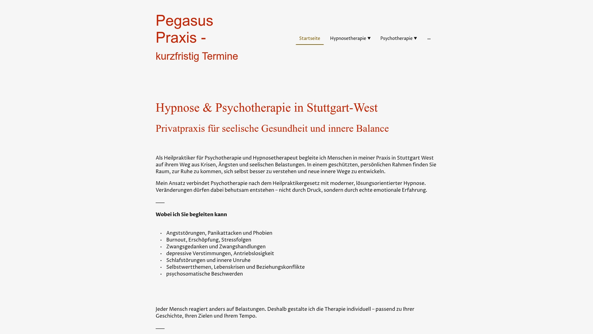 Bei Psychotherapie Hypnosetherapie finden Sie spezialisierte Angebote für verschiedene Beschwerdebilder, ob chronische Schmerzen, Tinnitus oder Gewichtsreduktion. Alle Angebote sind auf Ihre individuelle Situation abgestimmt. Eine Terminvereinbarung ist direkt über die Hypnosetherapie Stuttgart Webseite möglich. Auch wenn Sie zunächst nur Fragen zur Selbsthypnose oder Nachsorge haben, stehen wir Ihnen beratend zur Seite.