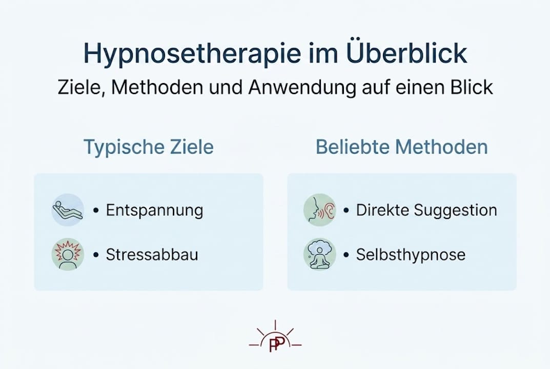 - Hypnosetherapie ist eine sichere, strukturierte Methode, bei der ein fokussierter Bewusstseinszustand genutzt wird. Der Erfolg hängt von qualifizierten Therapeuten, klaren Zielen und individueller Anpassung ab. Wissenschaftliche Studien belegen ihre Wirksamkeit bei Angst, Schmerzen, Schlafstörungen und mehr.