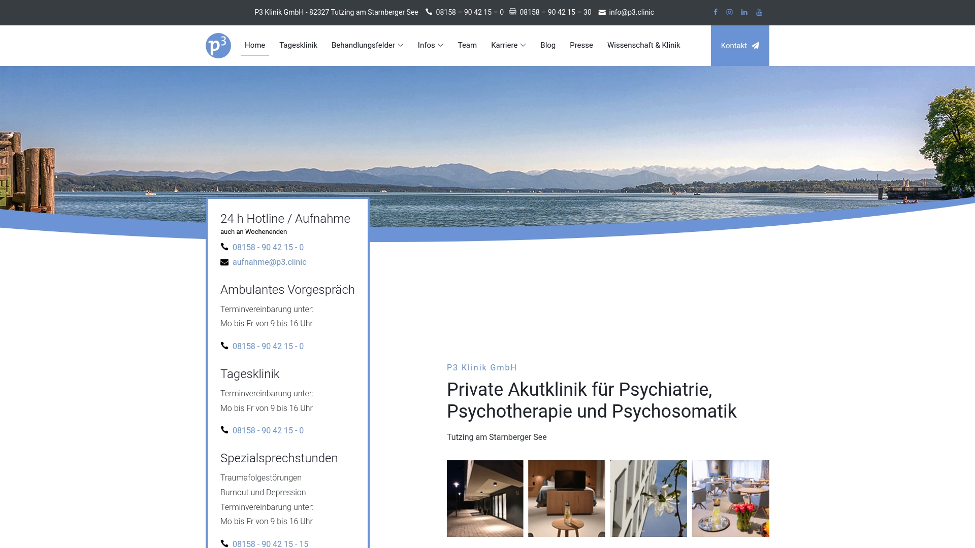P3 Klinik GmbH ist eine private Akutklinik in Tutzing mit klarem Fokus auf kurzfristige Krisenintervention und intensive, stationäre Behandlung. Die Klinik kombiniert Psychopharmakologie mit Einzel- und Gruppenpsychotherapie in einem ruhigen Umfeld am Starnberger See.