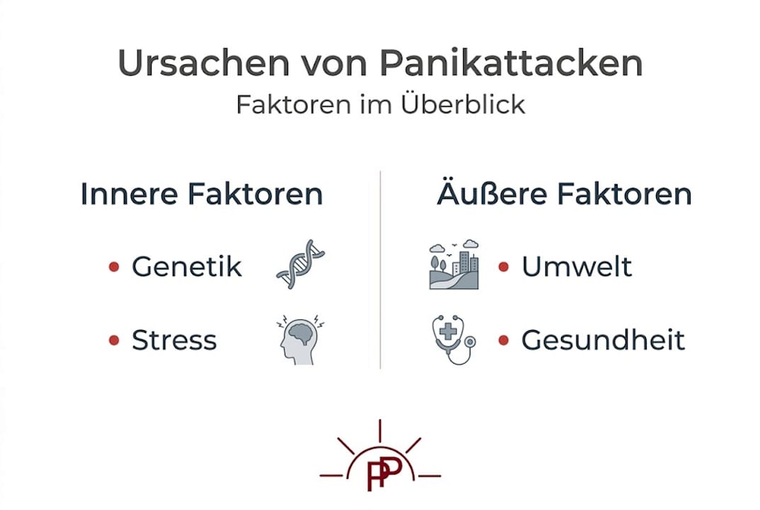 - Panikattacken können ohne erkennbaren Auslöser auftreten und sind auf komplexe biologische, psychische und soziale Faktoren zurückzuführen.